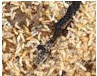 | 黑翅土白蟻 | 頭部卵圓形、左上鄂前方有一小齒,工蟻單型 | 前緣翹起,似馬鞍狀,比頭部狹 | 在地下筑巢、深可達(dá)2——3米,由諸多菌圃組成巢群,分群孔呈小土堆凸起 | 土棲 | 主要危害堤壩及農(nóng)作物、房屋地面木結(jié)構(gòu) |