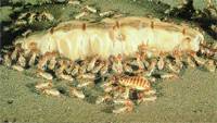 白蟻種類也有出現(xiàn)多王多后的現(xiàn)象,一旦原始型蟻王、蟻后體弱病死后,巢群內(nèi)會(huì)迅速產(chǎn)生短翅補(bǔ)充型或無翅補(bǔ)充型的蟻王、蟻后,繼續(xù)延續(xù)巢群的繁殖后代,擴(kuò)展群體的需要。如土棲白蟻群體內(nèi)的壯年蟻后,在其生殖的鼎盛時(shí)期,一晝夜內(nèi)約產(chǎn)8000粒- 10000粒蟻卵,一生中的產(chǎn)卵量高達(dá)5億多粒,這類白蟻的一個(gè)成熟的巢群個(gè)體數(shù)可達(dá)數(shù)百萬頭,并延續(xù)其幾十年的生活史,其種群個(gè)體數(shù)量的增長可以用呈幾何級(jí)數(shù)出現(xiàn)來描述。白蟻是動(dòng)物世界的建筑大師,它們建造的標(biāo)志性土丘高度可達(dá)到10英尺(約合3米)以上,照片中的土丘高度達(dá)到16英尺(約合4.8米)。這種 “摩天樓”采用白蟻嚼碎的樹枝、泥土和糞便建造,內(nèi)部環(huán)境非常舒適。白蟻建造的土丘通風(fēng)堪稱完美,猶如安裝空調(diào)一般,同時(shí)也可收集冷凝的水滴;一些蟻穴內(nèi)甚至還建有“真菌農(nóng)場”。[4]種類